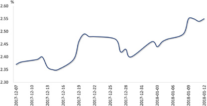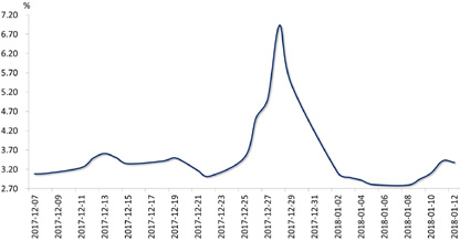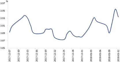 债券市场:因资金面趋紧,对监管政策的担忧加剧,市场信心不足,加上欧美国债收益率明显上行,通胀预期增强,国债收益率震荡上行;后在央行逆回购放量、社融数据低于预期的影响下有所回落。上周五,10年期国债收益率较前一周上行1BP至3.93%。