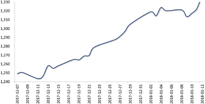 上周,美元走势低迷推动国际金价继续上涨,并触及去年9月来高位1340美元/盎司,周五收于1338.30美元/盎司,较前一周上涨1.88%。