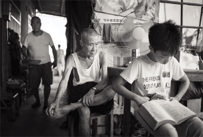 这些世代以打鱼为生的则水牌渔民每天早上聚集在古祠堂改建的老年活动中心互话家常,回忆、倾述先前的生活经历和对拆迁的不满与无奈。