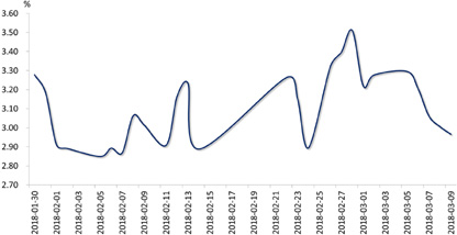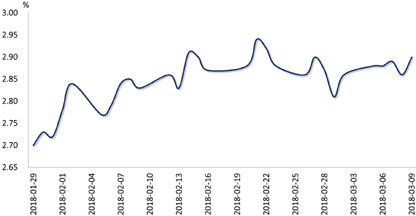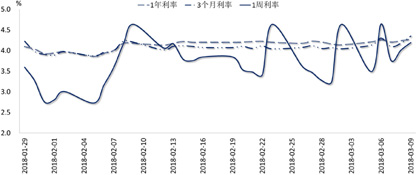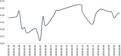 上周,美元指数先抑后扬。周初,因白宫经济顾问科恩宣布离职,美国政治不确定性增加,加之市场对特朗普发动贸易战的预期升温,美元指数下挫;周四,欧洲央行公布利率决议,淡化了市场对欧央行加息的预期,欧元承压下跌,相应提振美元指数。外部美元的波动对人民币走势的影响不大,人民币兑美元维持在【6.30,6.36】区间波动,市场交投缺乏明显方向,周五收于6.3370,较前一周升值0.16%。