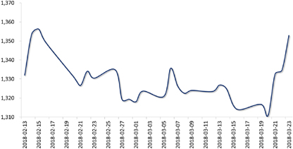 上周,美元指数先涨后跌。周初,离岸人民币基本跟随美元走势,但在特朗普政府公布对华贸易措施后,离岸人民币对美元一度贬至6.34的位置,周五在境内人民币中间价保持稳定的情况下,离岸人民币回涨,收于6.3137,较前一周对美元升值约130个点。人民银行在美联储加息后提升了在岸人民币市场逆回购利率,利差的缩窄促使离岸人民币掉期点全线走低,其中1年期掉期点跌破1000点,为2014年6月以来最低。