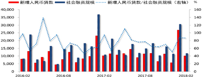 通胀方面,CPI明显提高,2月CPI同比2.9%,春节错位是CPI同比大幅回升的主要因素,同时由于寒冷天气导致鲜菜鲜果等价格超预期回升、猪肉价格同比跌幅收窄等因素亦对CPI形成正面拉动。PPI如期回落。由于2月主要大宗商品价格均有所下滑,带动生产资料负增0.1个百分点导致PPI环比负增0.1%,2018年2月PPI同比继续回落至3.7%。整体而言,2018年通胀压力不大。