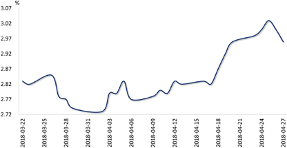 上周,受美债收益率持续上行、美元指数反弹影响,国际金价承压下挫;此外,朝鲜半岛紧张局势出现重大缓和,市场避险情绪降温,也打压金价。整体上,国际金价震荡走弱,一度触及五周低点,COMEX期金周五收于1324.10美元/盎司,当周累计下跌1.01%。