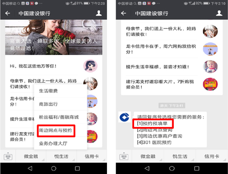 95533答:可以。如您取现金超过5万元,可通过微信银行预约,预约流程:关注“中国建设银行”官方微信号,点击微信菜单“悦生活-周边网点与预约-预约预填单-点击这里预约取款”,按提示操作即可完成预约取款。预约成功后,请点击页面“预约取号”获取预约号,该预约号在网点预约取款时,可享优先服务。除微信银行外,我行预约取款渠道还有的手机银行、个人网银和网点等。