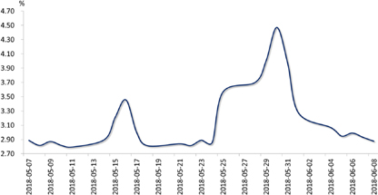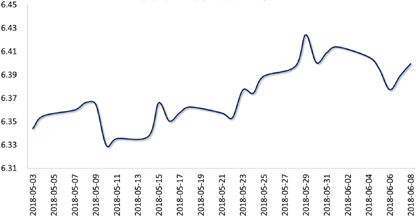 上周,因意大利政局趋稳,市场对欧元区的担忧降温,加之欧洲央行多位官员就货币政策发表鹰派言论,助力欧元反弹,相应美元指数高位回落。美元指数的下跌,加上市场结汇需求旺盛,带动人民币兑美元升值,周五收于6.4097,当周累计升值0.11%,结束了连跌三周的走势。