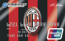 自2009年2月起,中国建设银行先后与AC米兰、皇家马德里、巴塞罗那、利物浦、国际米兰、曼联、尤文图斯、阿森纳等世界顶级足球俱乐部合作发行冠军足球信用卡,梦想今日成真、共享胜利喜悦、正版积分礼品和珍藏纪念卡册四大超值产品权益,给球迷持卡人带来了无穷的刷卡惊喜。