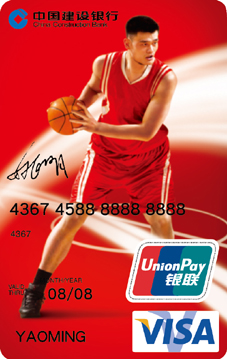 2007年,建设银行推出以姚明为主题的信用卡“明卡”,面向广大篮球爱好者及年轻一族发行,国内首创姚明签名夜光设计及卡通异型卡面,在国内信用卡产品中独树一帜,受到了球迷群体的追捧,成为百万明卡持卡人的经典回忆。