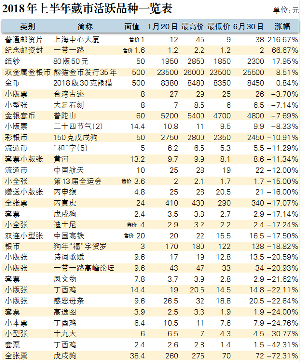 编者按: 2018年已走过了一半,藏市依然在低迷调整中呻吟,绝大多数藏品处于阴跌状态,但也有部分品种则受到投资者追捧。从市场表现看,新品种仍然是市场活跃对象,成为热钱追逐目标,不过投资者的选择性非常强,介入的主要品种为今年缩量藏品,而大多数发行量朦胧或减量幅度有限的新品,继续遭遇被抛弃的命运。如此,市场上的藏品也就显露出冷热不均的状况,特别是4月份以来,这种现象更为突出,形成了低迷大环境下的小热点氛围,惟对市场整体而言,这些小热点是无法撼动藏市的颓萎之势。