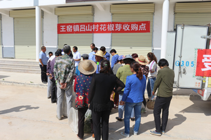 今年4月初,受强降温、霜冻等灾害性天气影响,造成秦安县以苹果、桃、花椒为主的林果业严重受灾,特别是花椒全部绝收。为了最大限度的弥补灾害造成的损失,县委、县政府通过积极协调县农业龙头企业甘肃盛源菊香农业发展有限公司大量收购受灾户花椒芽菜,降低损失成本,增加椒农收入。镇上逐级完善销售渠道,由甘肃盛源菊香农业发展有限公司在每村确定一名经纪人进行集中收购、转运,确保花椒芽当日采摘、当日运送,保证销售的畅通。