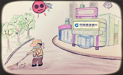 咦?这不是咱们建行的小哥哥吗?只见他热情邀请环卫工人走进了网点,歇歇脚,喝点水,阵阵凉风瞬间赶走夏日的酷热。