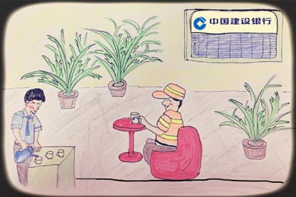 建行网点辟出空间,提供休息饮水、WiFi图书、手机充电等服务