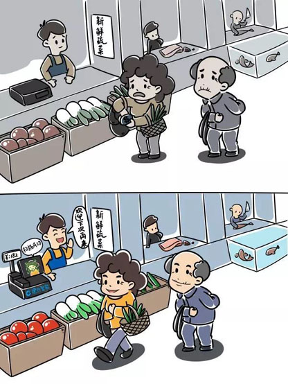 几年前,去小菜场买菜要带着一大堆零钱硬币,现在冲着市场的智能POS刷一下脸,“叮”的一声就可以把菜带回家!“谢谢侬,阿姨!老灵额!”
