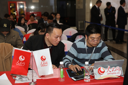 发布会新闻媒体区一角,媒体记者在认真工作。