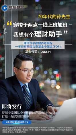 作为公募行业又一创新性产品,养老目标基金未来将如何运作,基金管理人的投资实力尤为关键。建信基金成立13年来,以“善建财富”为初心,以“相伴成长”为始终,凭借专业出色的投研实力获得机构投资者和个人投资者的认可。海通证券最新发布的《基金公司权益及固定收益类资产业绩排行榜》显示,截至2018年6月30日,建信基金旗下权益类基金、固收类基金近5年收益率达72.81%、43.54%。同时,建信基金也是业内首批6家获批并发行FOF产品的基金公司之一,公司在FOF领域内的雄厚投研基础和丰富实战经验都将助力养老目标基金的管理运作。