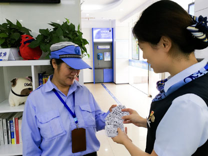 由“劳动者港湾”里慢慢延伸到附近居委中,仅一个九月,梁磊就两次前往黄浦支行党建共建单位淮海居委会,为附近民众进行简单的英语指路培训及公益宣传。营业室员工还经常走出去,走上街道向基层劳动者们宣传、分发指路小卡片,尽力让公益的队伍壮大些,也让更多人对于打造“上海服务”品牌有了参与感。