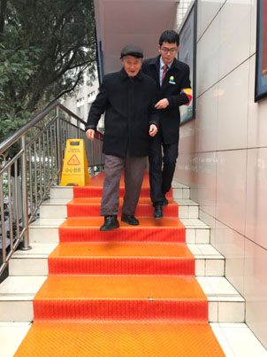 遵义分行员工铺垫纸板保障客户安全,搀扶出入客户。