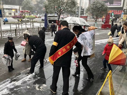 贵阳城北支行为前来办理业务的客户铲出一条平安之路。