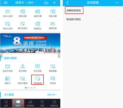 密码太多想不起?简单几步重新设置~ 登录手机银行后,点击“信用卡”-“密码管理”。