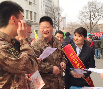 积极响应“军民融合”战略,培养建行员工的社会责任感和志愿服务意识,推动“普惠金融”战略进军营,安华支行机构业务部联合支行辖内多个网点共同开展志愿服务活动,各个志愿服务小组分别前往中央军委某总部机关和中央军委联合参谋部某局开展送金融服务进军营活动。