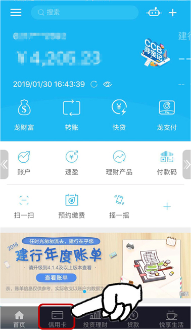 1.打开“中国建设银行”手机银行APP,点击底部“信用卡”。