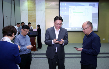 建行广东省东莞分行副行长鲍杰汉,向学员展示利用线上媒体开展“云税贷·东莞经验”推广。