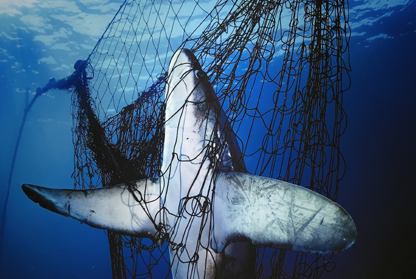 一条长尾鲨被困在刺网里,走到了生命的尽头
