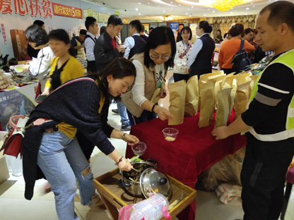 五月暖阳中,广西区柳州分行首场携手“第一书记”龙支付五折嗨购农产品特卖惠活动火爆开启。现场共邀请到15个广西融水苗族自治县的贫困乡村参展,各村驻村第一书记们带领村民搭设“一村一展区”,建行为“第一书记”专门策划了“我为俺村代言”的环节,可敬可爱的“第一书记”们各显神通、卖力宣传所在乡村的土特农产品,将活动引入高潮。瞧,一位村民刚端出来一锅热气腾腾的高山香糯饭,马上被眼馋的客户围了起来争相试吃。“这糯米饭好香!我来两袋!”“‘土’的就是不一样!口感太好了,还五折,我要五袋,分享给亲戚们!”