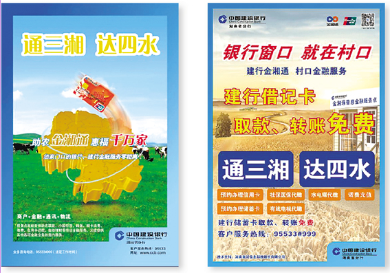 目前已叠加服务场景十个:打造金湘通+联通、金湘通+移动、金湘通+电信、金湘通+电力局、金湘通+卫生院、金湘通+连锁商超、金湘通+电商、金湘通+中石化、金湘通+58农服、金湘通+智慧政务十类非金融服务场景。