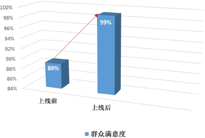 平台上线前后,群众办事平均满意度由上线前的89%提高到99%