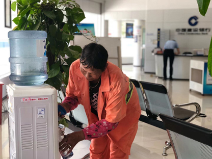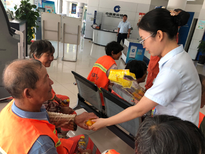 不管是烈日高温,还是刮风下雨,环卫工人、快递小哥、搬运师傅们依然坚守岗位,而建行各网点正是他们的温情港湾,累了能歇脚,渴了能倒水,错过了饭点支行网点还有小面包提供。