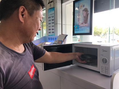 平湖新埭支行隔壁家具店的搬运师傅,在得知网点有冰箱和微波炉可以使用后,特别感谢建行为他们提供了方便。出门在外手机没电的痛苦大家都有所体会,平湖支行各网点的劳动者港湾提供了各种品牌的数据线,一解客户的燃眉之急。另外,对外开放的卫生间、急救箱、书报杂志,让需要帮助的人们有了一个温馨的港湾。