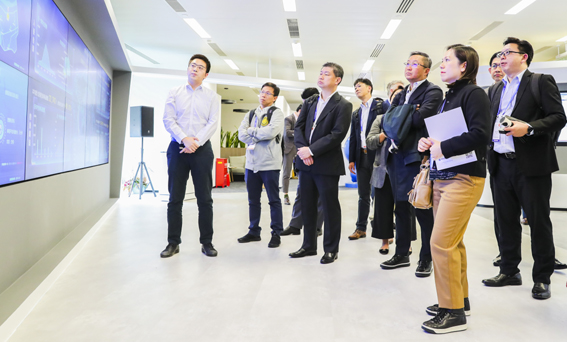 “中国创新学习之旅”聚焦中国在金融创新领域的发展及机遇,由国际银行业权威人士及亚洲银行家研究组带队,来自亚洲多个国家金融行业的多名高级代表参加。此次来到建信金融科技参观,旨在通过具体案例了解公司作为国有大型商业银行设立的第一家金融科技公司,如何发挥科技创新作用,推动商业银行转型。图为ECC大屏展示的内容吸引了来宾的注意。■ 金科/图文