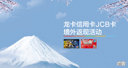 即日起至2020年3月25日,持卡人须通过建行手机银行APP报名后,使用含JCB标识的龙卡信用卡(包括单标卡及双标卡)在境外线下通过JCB清算网络POS刷卡消费,可获笔笔返现8%。符合返现条件的最低交易金额为等值1美元。每持卡人活动期间限获等值350元人民币。数量有限,先到先得!