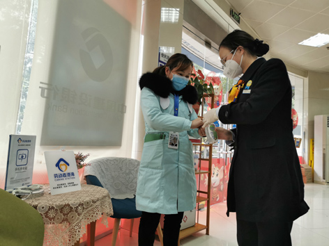 同时,支行主动发挥国有大行的责任担当意识,组织全支行网点,严格对营业场所、柜台、自助服务机具等服务设施进行清洁消毒。营业网点每日对各区域、网点家具、设备设施等进行消毒,确保客户使用到清洁的金融机具。