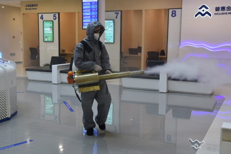 为切实加强新型冠状病毒感染的肺炎疫情防控,为广大客户提供安全的业务办理环境,保障坚守岗位的员工身体健康,2月3日,浙江省嘉善支行特邀嘉兴尖峰救援队到支行开展全面消毒杀菌工作。救援队员们仔细地对营业部大厅、大楼办公室、过道、电梯、食堂及车库等区域进行全面消毒杀菌,不放过一处死角。