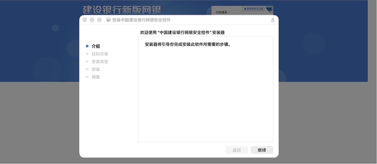 若您采用Windows系统IE浏览器/360安全浏览器(兼容模式)/QQ浏览器(兼容模式)登录我行个人网银,需要安装中国建设银行网银安全控件,安装成功后,才能登录我行个人网银。具体流程如下: