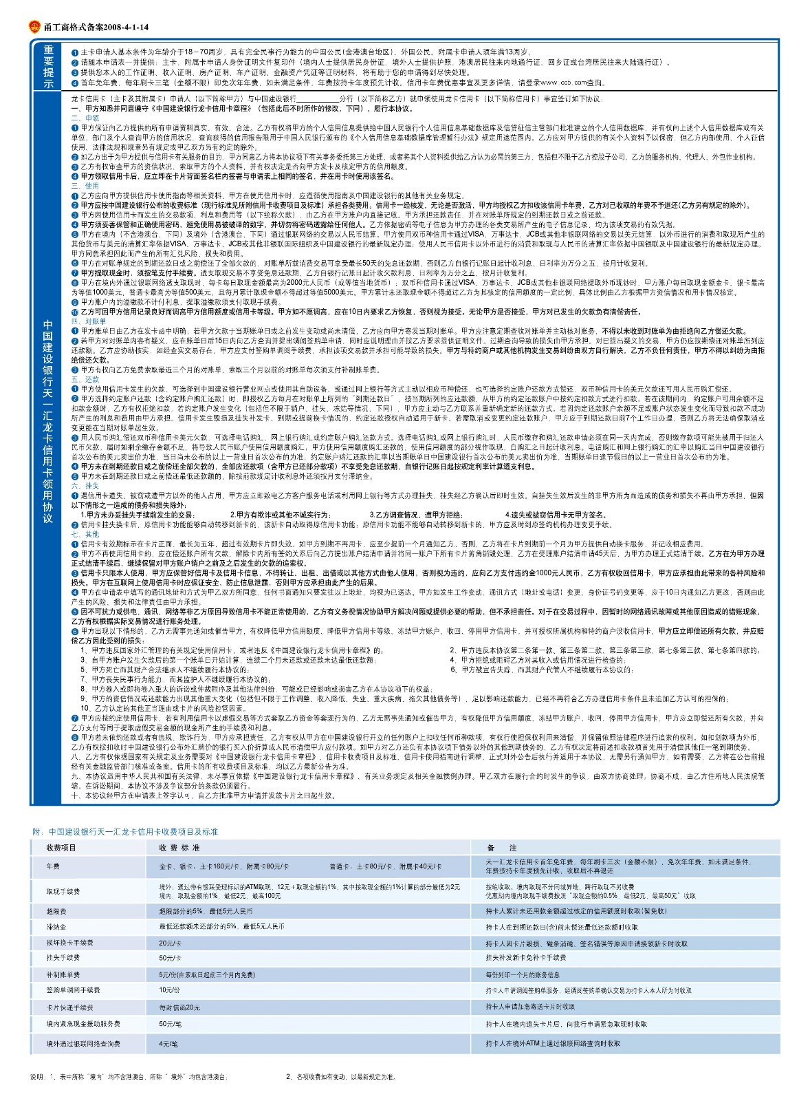 | 天一汇龙卡是中国建设银行宁波市分行与宁波城市广场开发经营有限公司合作发行百货类联名信用卡。 天一汇龙卡尊享权益 一、天一汇VIP会员卡功能 1、折扣优惠:“天一汇龙卡”持卡人可享受对应“天一汇VIP会员卡”权益;其中,银卡客户在达到“天一汇VIP俱乐部卡”的申请条件后,可享受俱乐部卡的各项权益;金卡客户在达到“天一汇VIP至尊俱乐部卡”的申请条件后,可享受至尊卡的各项权益。 (1)“天一汇VIP会员卡”在国际购物中心、酷购商城享受9.5折(8.5折以下及特例品牌、特殊时段恕不使用,使用时以各购物中心明示为准); (2)“天一汇VIP俱乐部卡”在和义大道购物中心、国际购物中心、酷购商城享受9折(8.5折以下及特例品牌、特殊时段恕不使用,使用时以各购物中心明示为准); (3)“天一汇VIP至尊俱乐部卡”在和义大道购物中心、国际购物中心、酷购商城享受8.8折(8.5折以下及特例品牌、特殊时段恕不使用,使用时以各购物中心明示为准); 2、天一汇VIP会员积分奖励:在和义大道购物中心、国际购物中心、酷购商城刷卡消费,可获得天一汇VIP会员的积分奖励。(特例商品除外) 3、其他天一汇VIP会员服务: (1)生日当天购物消费双倍积分。 (2)VIP俱乐部及VIP至尊俱乐部会员资格还可享受生日祝福传递;购物免费礼品包装、雨伞借用服务等;VIP休息室免费享用茶水、浏览报刊、洽谈商务活动;参加VIP俱乐部活动和特约联盟商户消费优惠。 二、专享权益 1、建行贵宾服务:天一汇龙卡银卡或金卡客户可享受宁波建行网点贵宾优先服务待遇。 2、双重积分:信用卡持卡人在和义大道购物中心、国际购物中心、酷购商城刷卡消费,可同时享受建设银行与天一汇VIP会员的积分奖励。 三、专享促销活动 持卡人可不定期享受在和义大道购物中心、国际购物中心、酷购商城举办的专属促销活动。 附件: 天一汇龙卡申请表<点击下载> 天一汇龙卡协议<点击下载> |