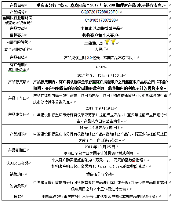 2017年第288期理财产品说明书