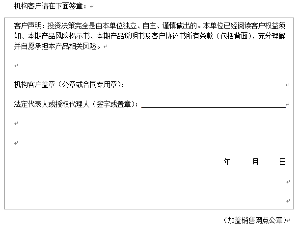 您签署本风险揭示书、客户协议书,并将资金委托给中国建设银行运作是您真实的意思表示。本风险揭示书及相应的客户协议书、产品说明书、客户权益须知将共同构成贵我双方理财合同的有效组成部分。