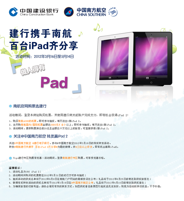 建行南航共携手 百台ipad齐分享
